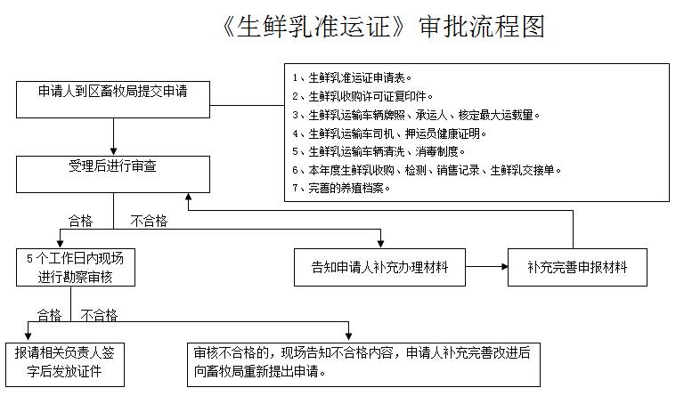 申请人需提供以下所有资料:1、生鲜乳准运证申请表。(华州区畜牧兽医局畜安股领取申请表)2、生鲜乳收购许可证复印件。3、生鲜乳运输车辆牌照照片,承运人身份证复印件(正反两面,A4纸复印),核定最大运载量证明4、生鲜乳运输车司机、押运员健康证明。5、生鲜乳运输车辆清洗、消毒制度。6、本年度生鲜乳收购、检测、销售记录、生鲜乳交接单。7、完善的养殖档案。以上所有资料一式两份