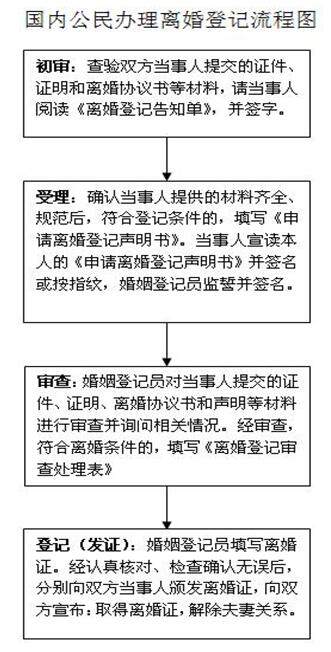 1. 递交丨审查:申请离婚的当事人向一方户籍所在地区民政局婚姻登记处提出申请,递交所需资料,申请人领取并填写《申请离婚登记声明书》、《离婚登记审查处理表》,承办人员进行审核。