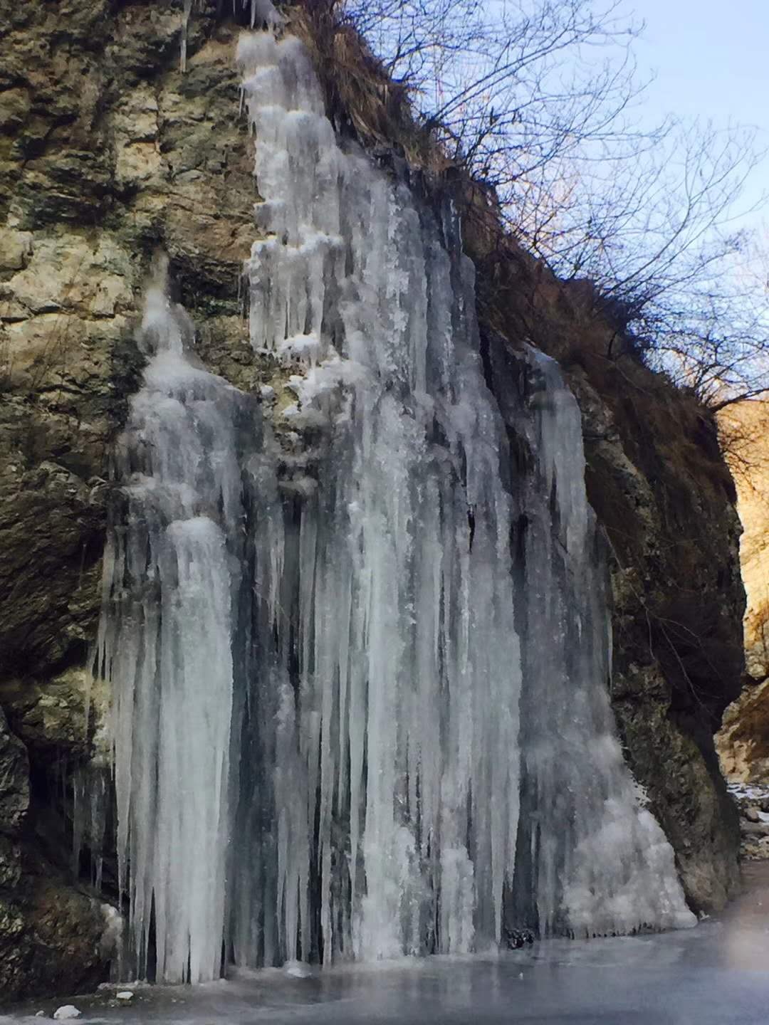 冰瀑(icefall)是因天气寒冷,水流到低于零摄氏度的地表后与岩石冻结而形成的一种自然现象。位于华州区石堤峪的冰瀑,其壮观景象让人不禁感叹大自然的鬼斧神工之妙。
