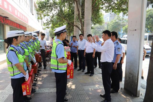 在新华大街十字,霍文军看望了正在烈日下执勤的交警,为他们送上慰问品。霍文军对公安交警为维护城市交通安全、保障群众畅通出行,在高温酷暑下坚守岗位、忠于职守的精神给予充分肯定。同时叮嘱大家在做好路面执勤工作的同时,一定要科学安排警力,注意防暑降温。