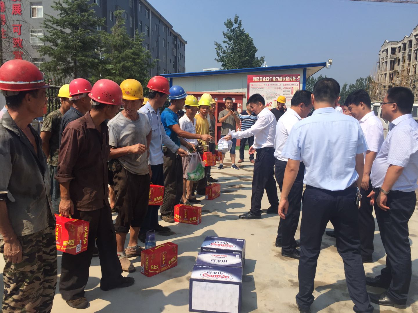 在高塘镇移民搬迁项目点和渭华干部学院工地,霍文军看望慰问了来自各地的建筑工人,对他们为革命老区建设发展付出的辛勤汗水表示感谢,并嘱咐项目负责人一定要做好工人防暑降温工作,在保证施工安全的情况下合理安排工作时间,确保工程按序时进度高标准、高质量推进。