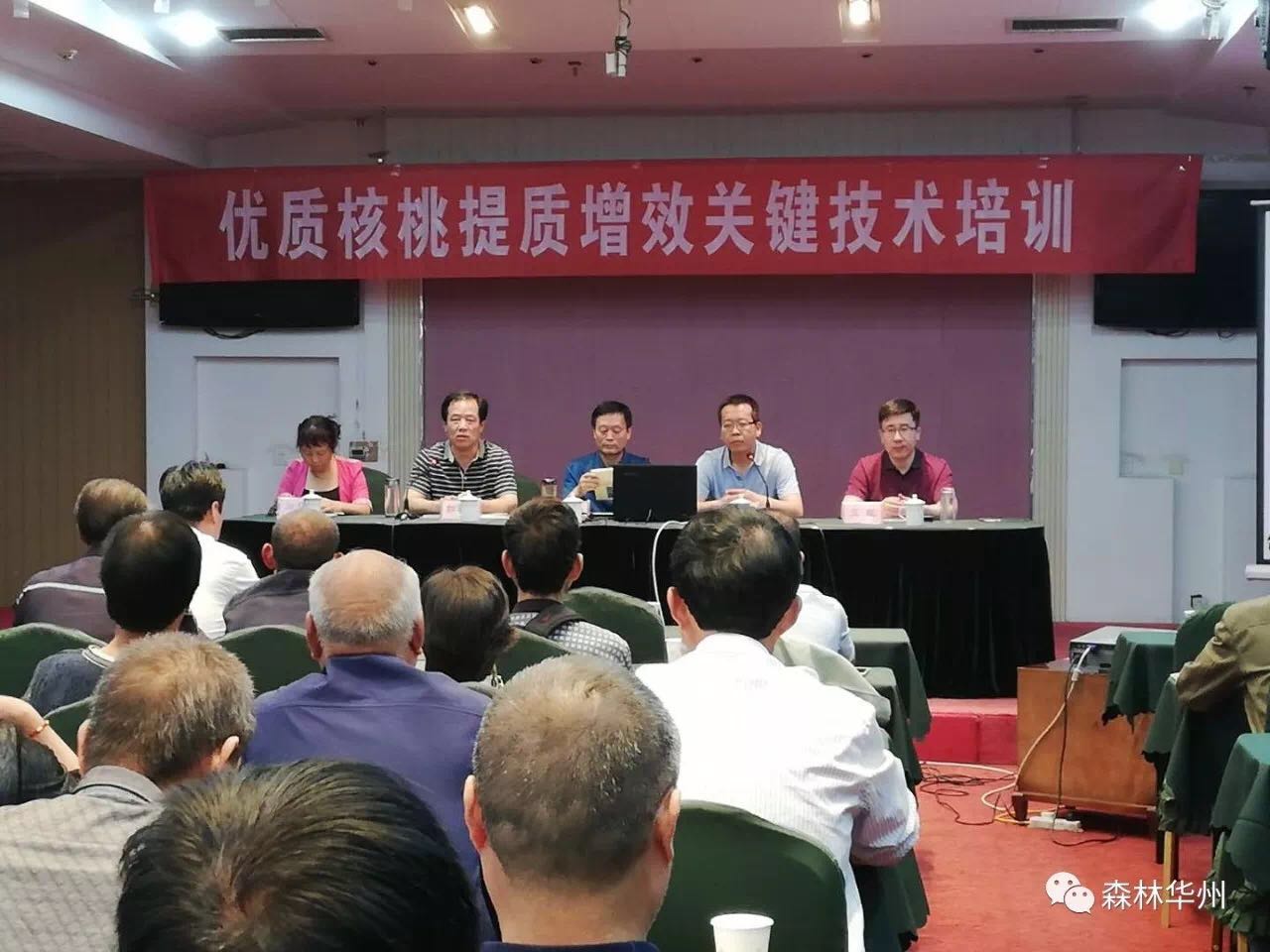 这次授课采取室内理论授课与现场演示培训相结合的方法进行。上午,在华州大酒店五楼会议室,原双进从核桃栽培前景、发展现状、优良品种、建园、嫁接换优、整形修剪、田间管理和病虫防治等关键技术入手,通过通俗易懂的语言,结合丰富的实践经验,将一个个高深的理论知识讲精讲透,给听课群众送上了一份核桃栽培管理“知识技能大餐”。
